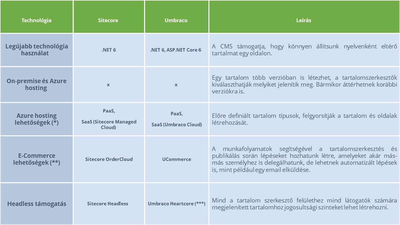 (***) Az Umbraco Hearcore egy SaaS szolgáltatás